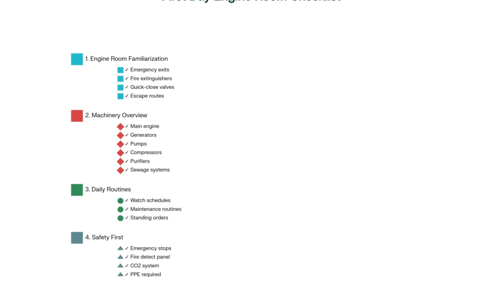 Stepping onboard as a new Engine Cadet or Junior Engineer is more than just reporting for duty — it marks the start of your professional reputation at sea. From my 28 years in the engine room, I can tell you that the first day sets the tone for your entire contract. The quicker you familiarize yourself with your surroundings, your duties, and your safety responsibilities, the smoother your adjustment to shipboard life will be.