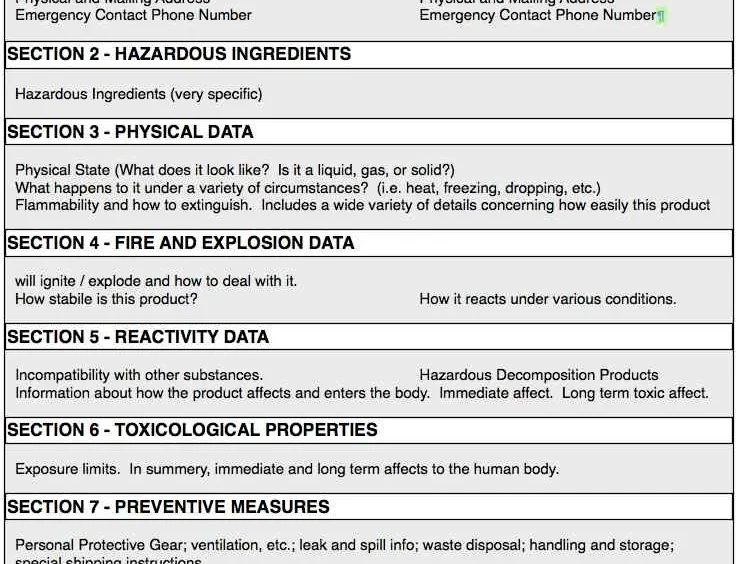 A standard MSDS usually has 16 sections. You don’t have to memorize them all, but you must know the following key ones: