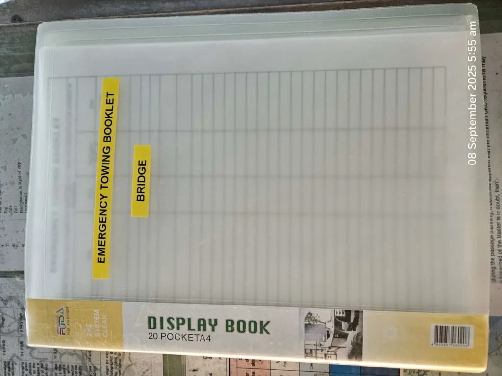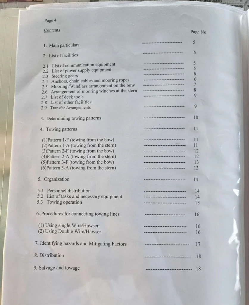 Take more time to respond in congested waters. Thus, a clear and updated ETB is crucial-it avoids delay, confusion, and accidents during emergence situations. Below are a few photos from an actual emergency towing booklet onboard.